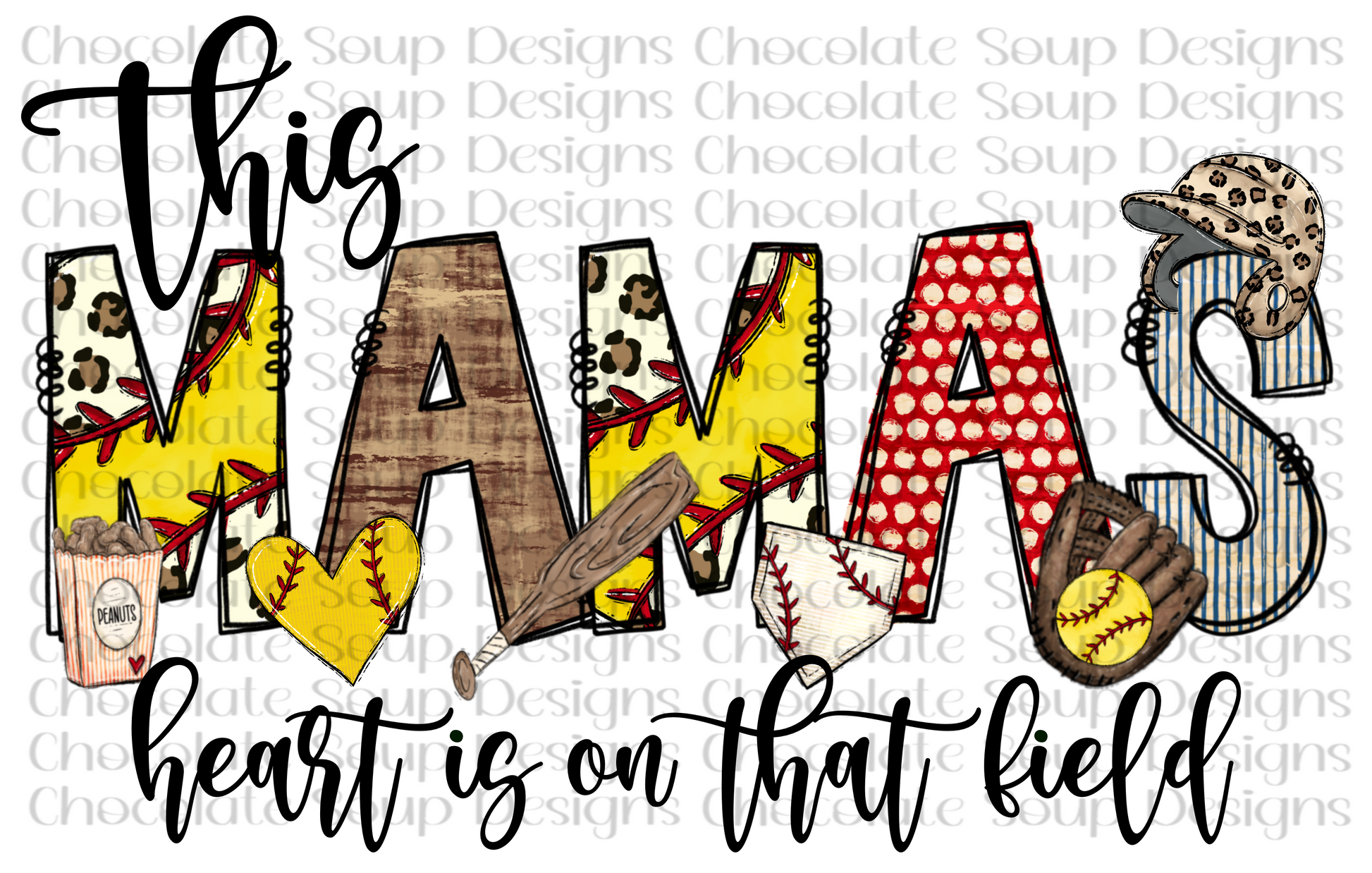 This Mamas Heart is on that Field-Softball with Sleeve Heart