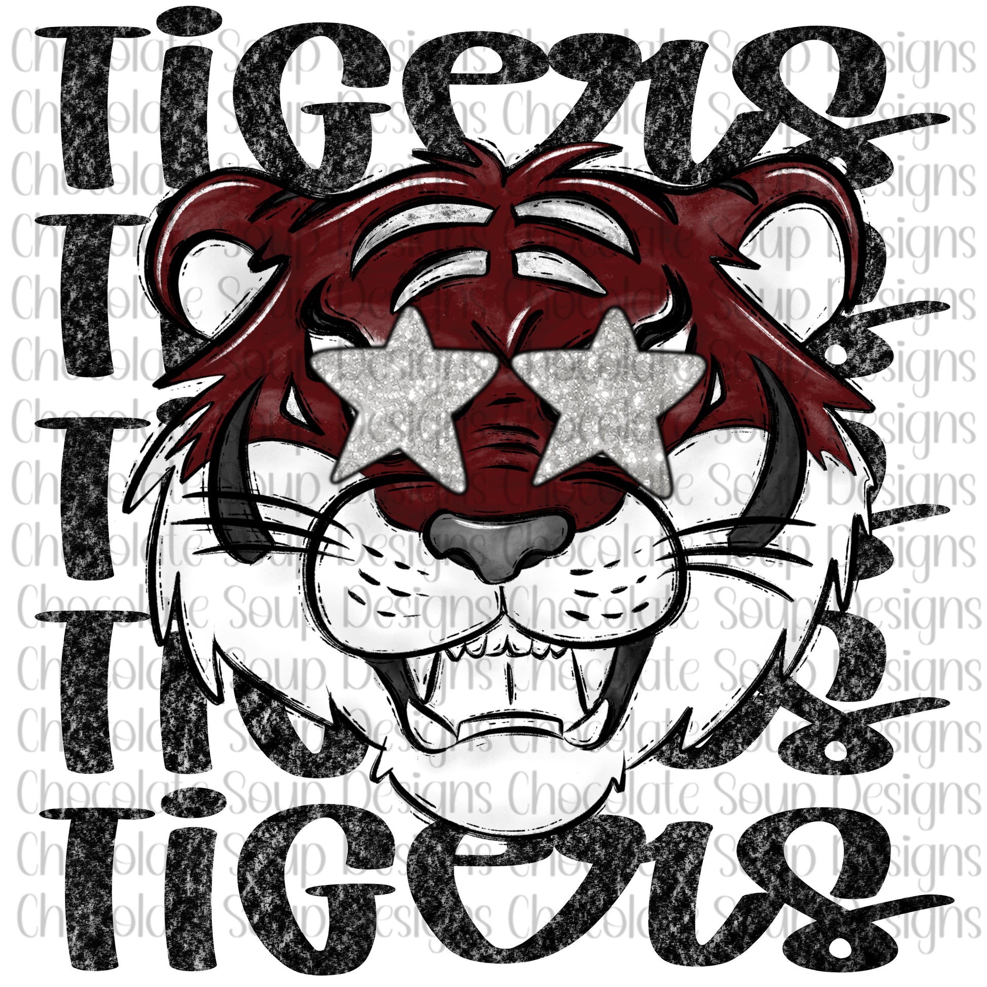 Tigers Preppy Mascot-Maroon White Silver